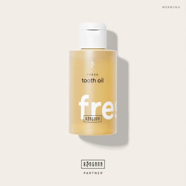 FRESH tooth oil ist eine innovative Mundpflegekur. Beim Ölziehen wird der Mund mit dem Zahnöl gespült, um schädliche Bakterien zu entfernen.