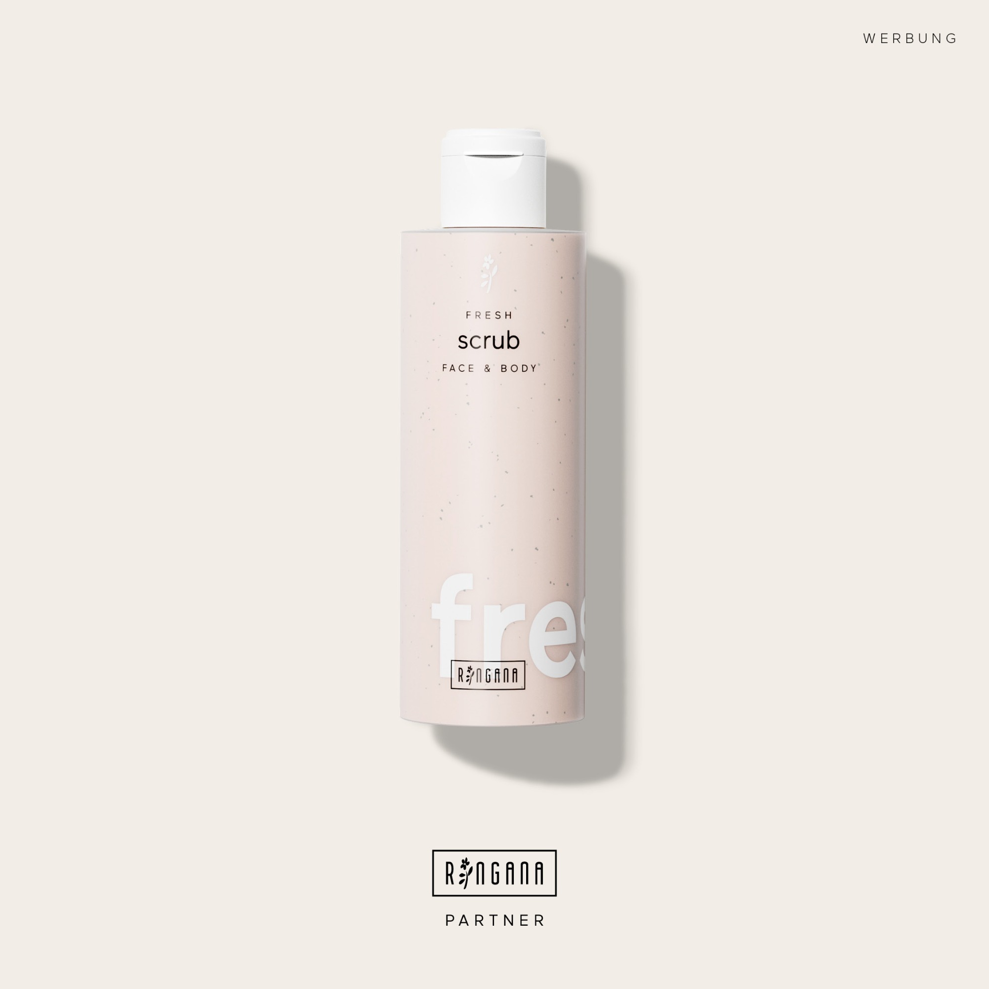 Das stimulierende FRESH scrub face & body mit Peelingkörpern aus Himbeere, Blaubeere, Aprikose und Granatapfel